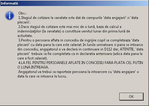 23.02.2021 S-a actualizat programul cu noul Salariu Minim pe economie (2300) si s-au introdus noi tipuri de asigurati, respectiv pentru salariatii care contribuie pentru pensie, la alte Case de Pensii decat Casa Nationala de Pensii (CNPP). In aceasta categorie intra anumiti salariati din justitie . Atragem atentia asupra unor noi valente pe care le capata Data Angajarii. Nu neglijati acest lucru, pentru ca mai tarziu, sa nu fie nevoie sa dati o multime de rectificative. “Data Angajarii” care pana acum era batuta in cuie, devine “Dată intrare in categ. de asigurat” si se poate modifica dupa regulile prezentate in butonul de ajutor “?” din dreptul acesteia. Iata un copy-paste al tipariturii asociate butonului: